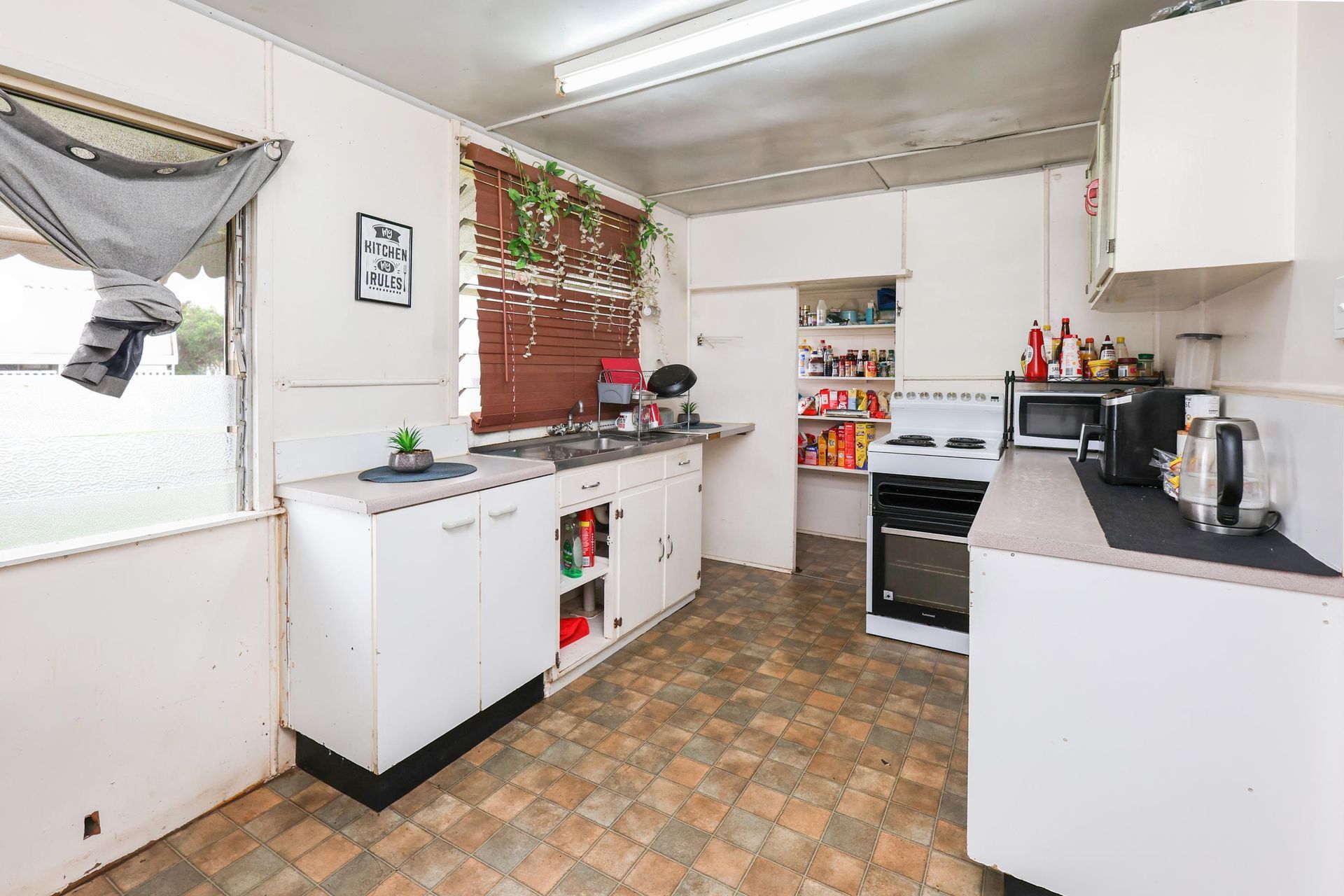 96 Uhr Street is deceivingly roomy inside, boasting 2 x generous sized bedrooms, plus a large front sun room that could easily be converted into another 2 x bedrooms. There is a large central living area that opens up onto the kitchen and the back patio area. The kitchen has a perfect sized walk in pantry.