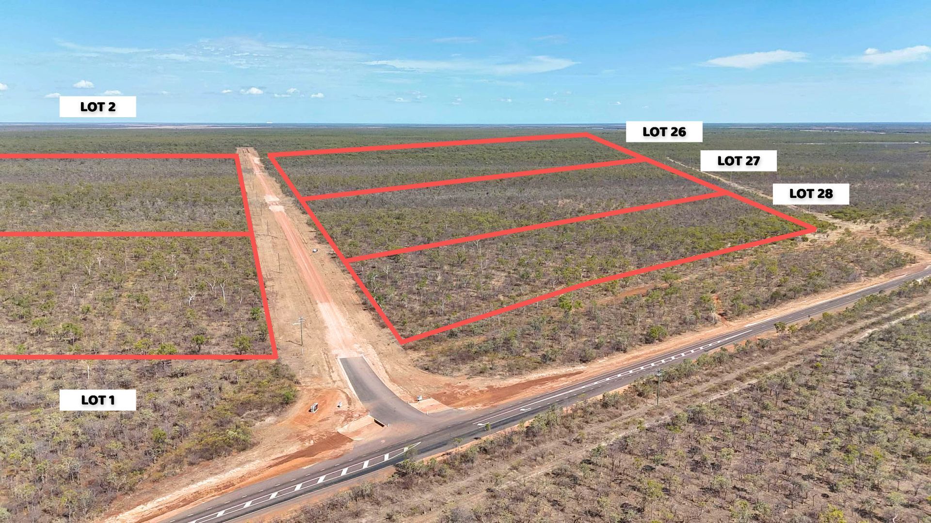 Blocks ranging from 4.61 Ha to 12.77 Ha, equipped with water connection and power soon to be connected. Each block has frontage onto Lilyvale Road.